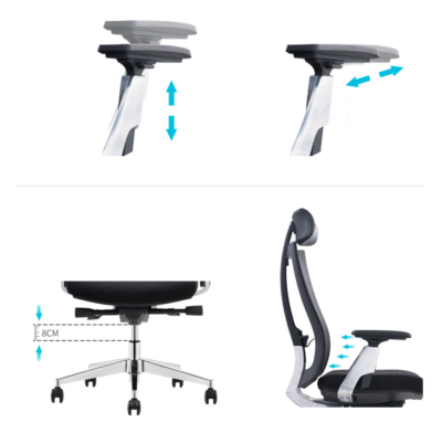 Tựa tay thiết kế khoa học , có thể nâng lên hạ xuống , đẩy tới đẩy lui cho phù hợp với tư thế ngồi